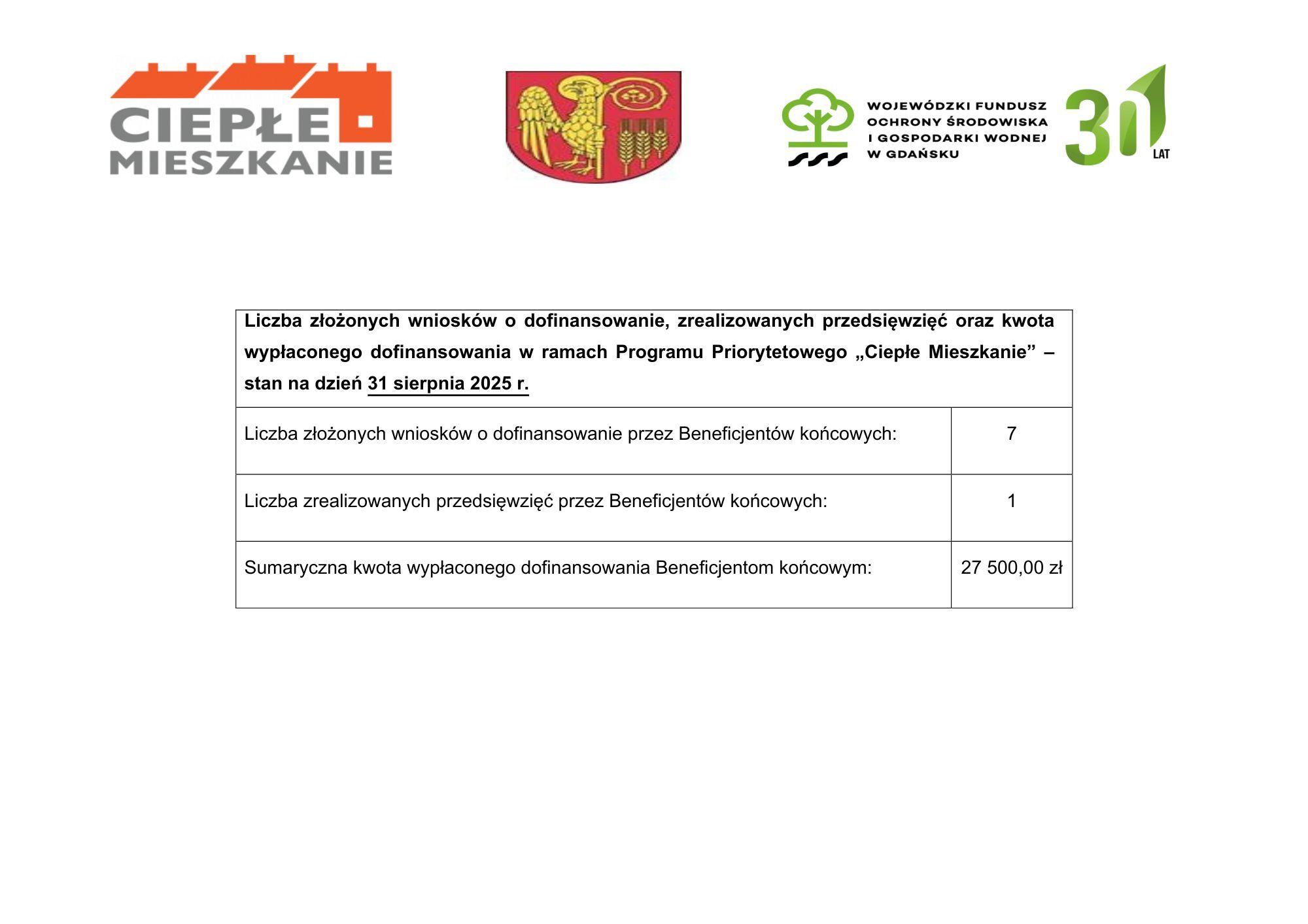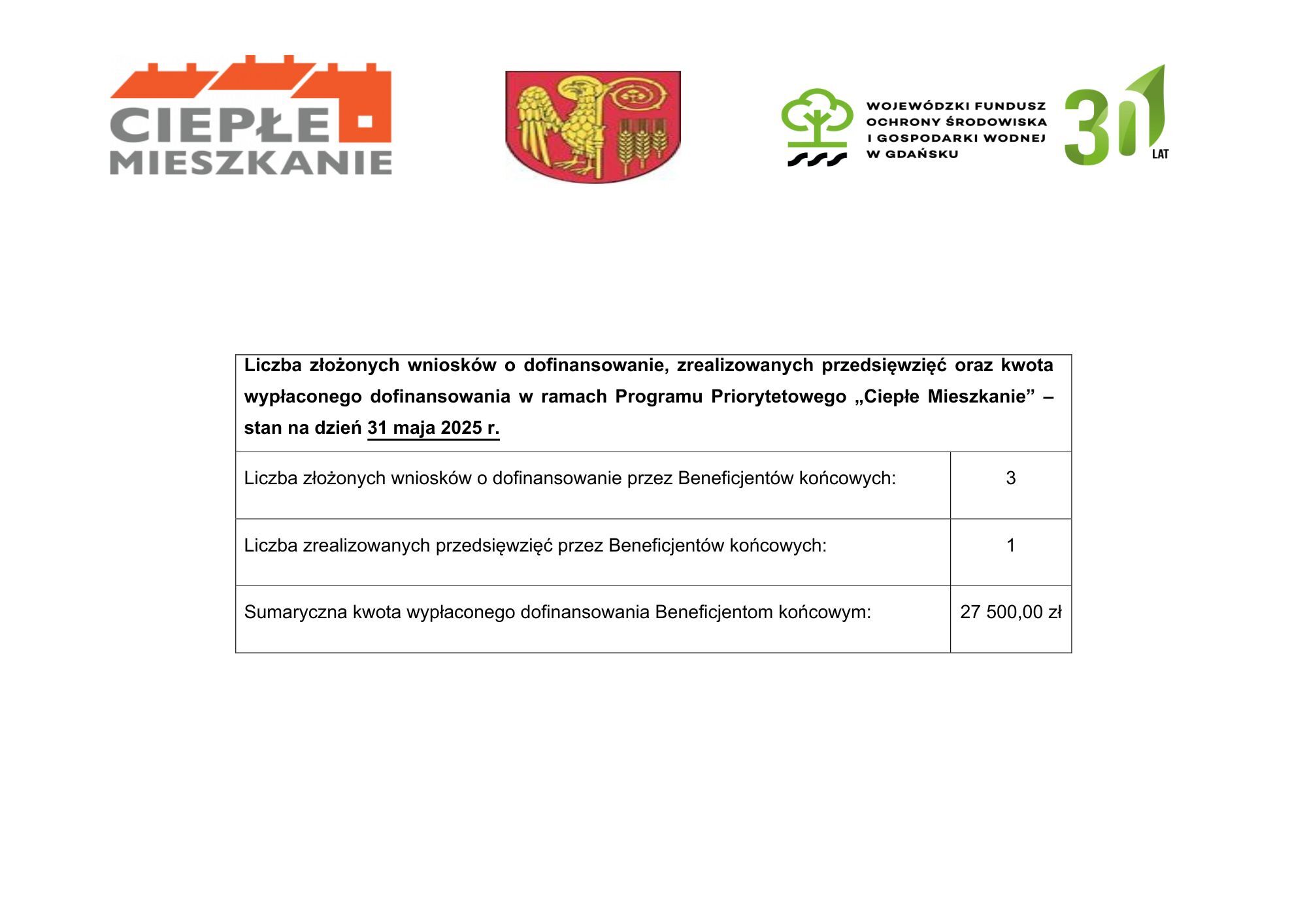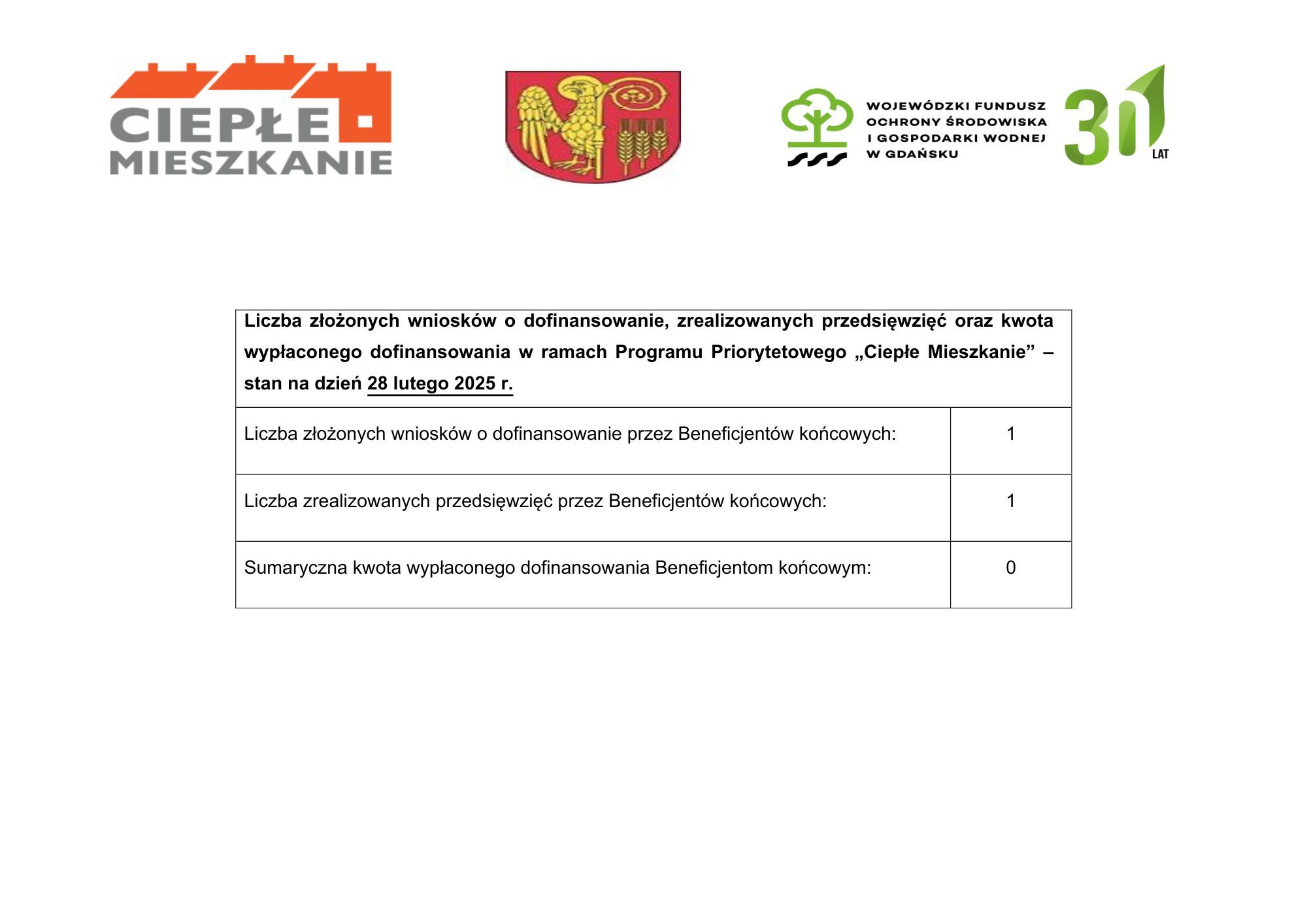 Liczba złożonych wniosków o dofinansowanie, zrealizowanych przedsięwzięć oraz kwota wypłaconego dofinansowania w ramach Programu Priorytetowego „Ciepłe Mieszkanie” EDYCJA II