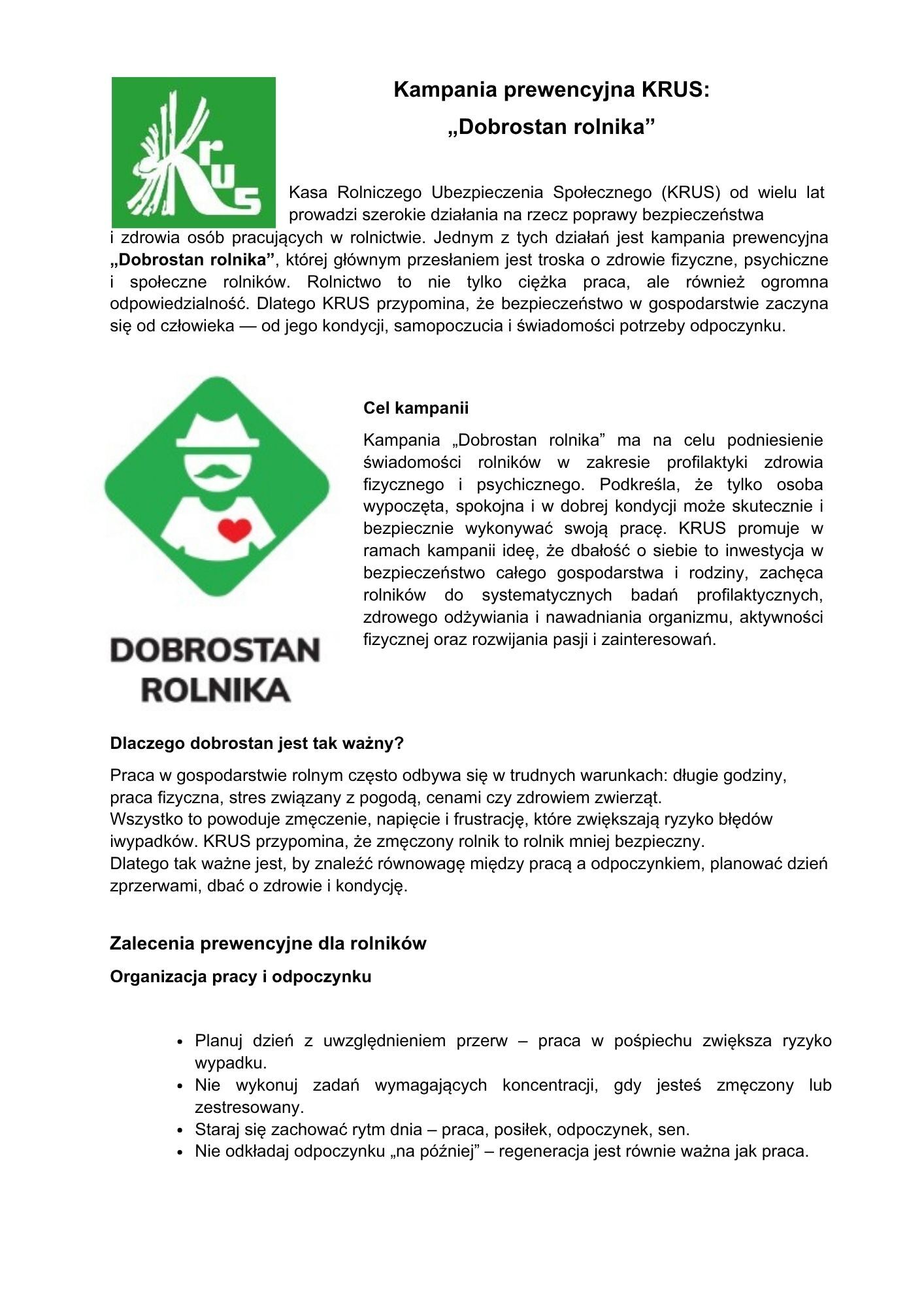 Jesteś na > Aktualności › KAMPANIA PREWENCYJNA KRUS