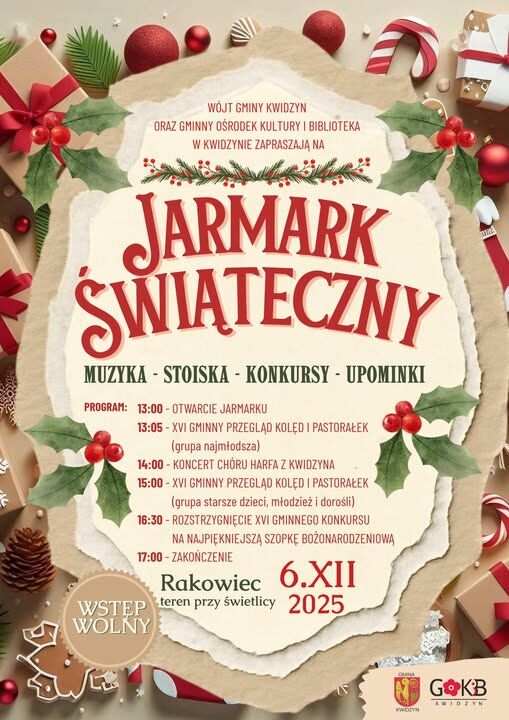 Serdecznie zapraszamy wszystkich mieszkańców i gości na Jarmark Świąteczny, który odbędzie się 6 grudnia 2025 r.