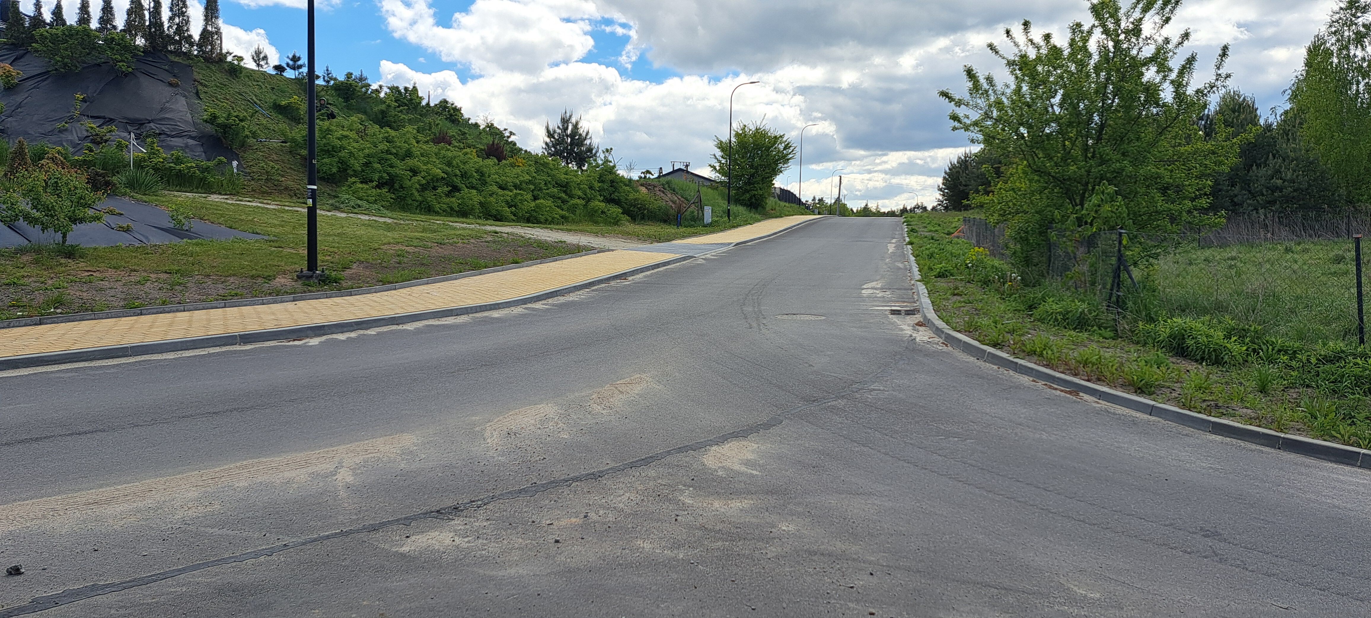 Zakres robót obejmuje wykonanie jezdni o szerokości 5,50 m z jednostronnym chodnikiem o szerokości 2,00 m oraz ciągi pieszo-jezdne o szerokości 3,50 m do 5,50 m. Do ulic zostaną włączone istniejące zjazdy do garaży i na teren posesji oraz dojścia do budynków mieszkalnych. Nawierzchnia jezdni wykonana zostanie z masy bitumicznej oraz kostki betonowej, część zjazdów do posesji zostanie wykonana z kostki betonowej.