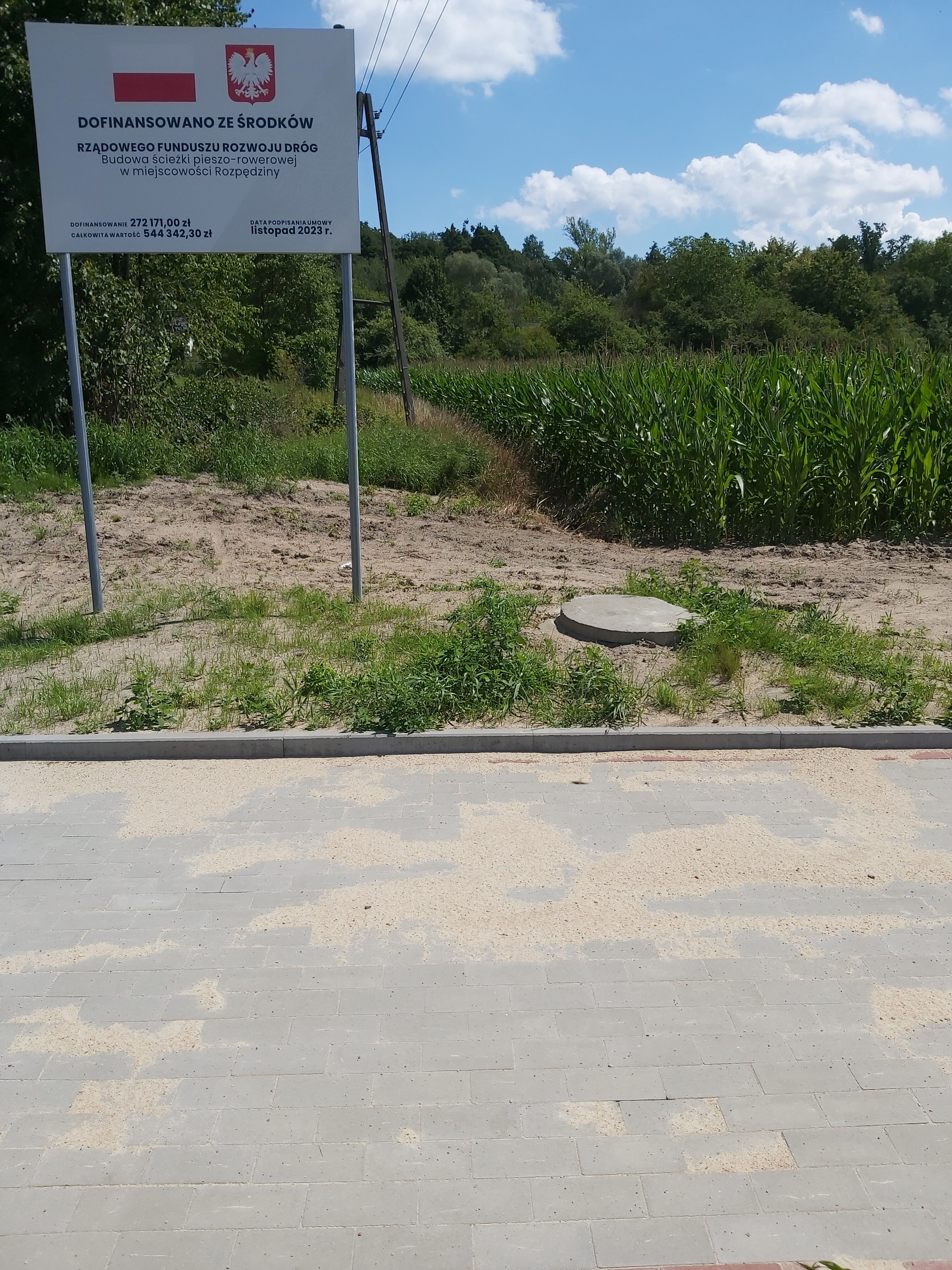 Opis zadania: budowa odcinka ścieżki pieszo-rowerowej w miejscowości Rozpędziny o długości ok. 680 m (etap IV dokumentacji projektowej)